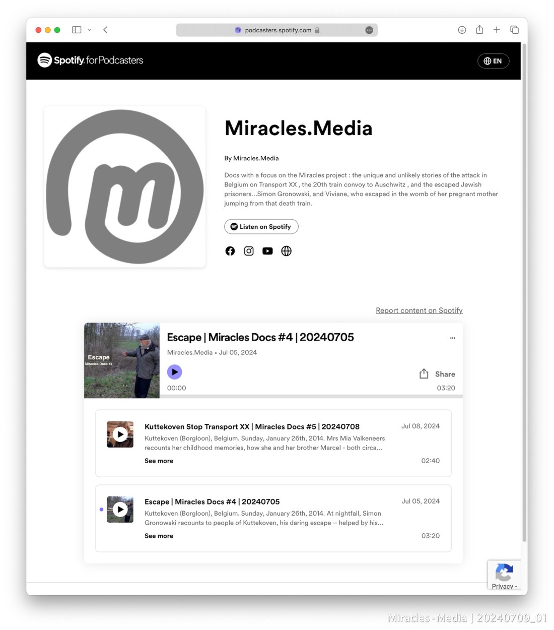 Miracles.Media started a podcast channel on Spotify for Podcasters , at https://podcasters.spotify.com/pod/show/miraclesmedia