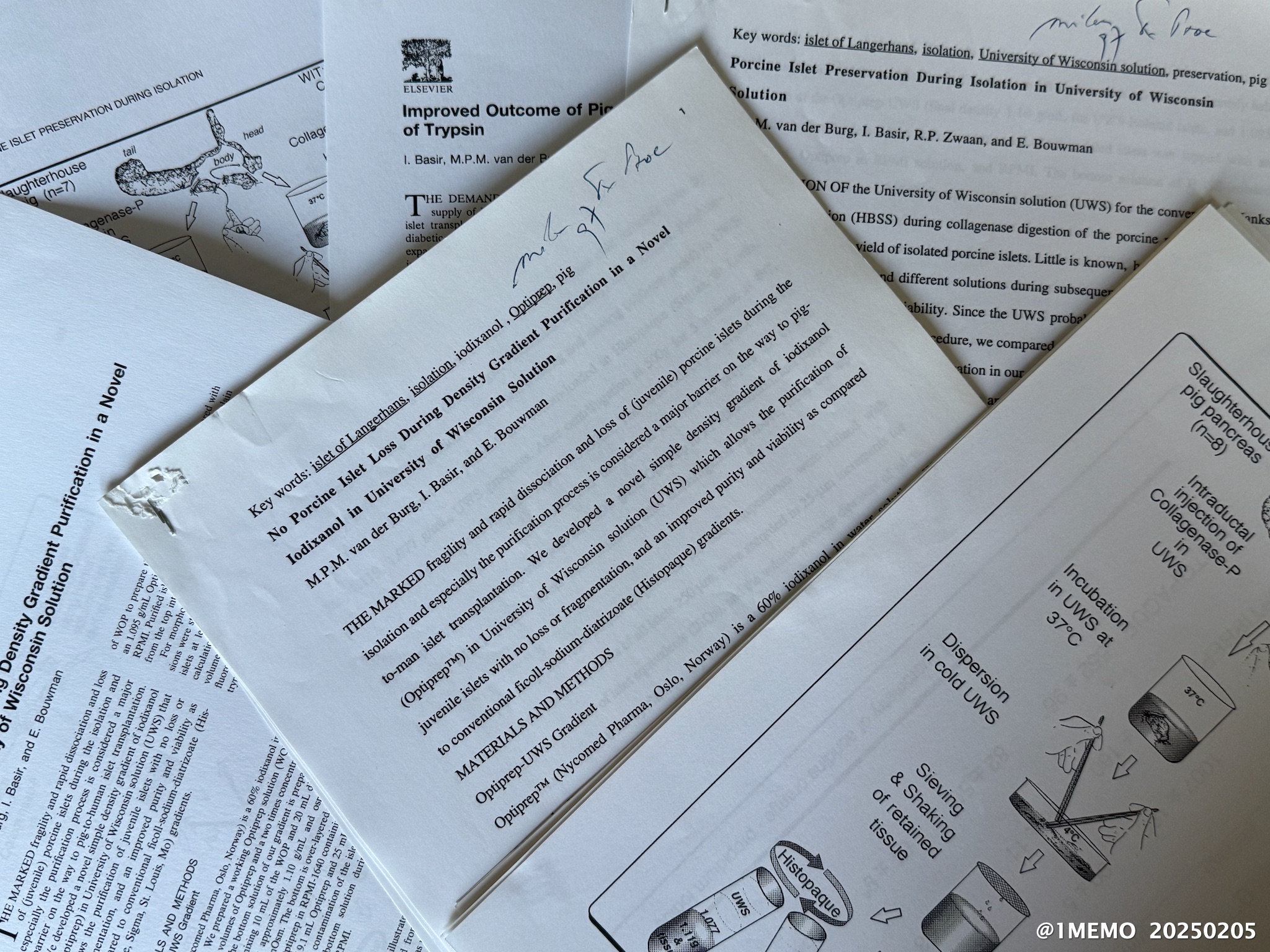 1) Van der Burg MPM, Basir I, Zwaan RP, Bouwman E. Porcine islet preservation during isolation in University of Wisconsin solution. Transplant Proc. 1998 Mar;30(2):360-1. doi: 10.1016/s0041-1345(97)01307-9. PMID: 9532079.