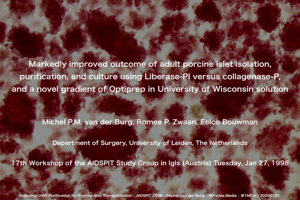 Citation info : GLP-1 blood sugar regulation in islet transplants • AIDSPIT 1994 • Michel van der Burg • Miracles.Media • @1MEMO 20251114 • TakeNode 810cc881-d084-4d2e-b252-d432918b1946 • URL https://michelvanderburg.com/2025/11/14