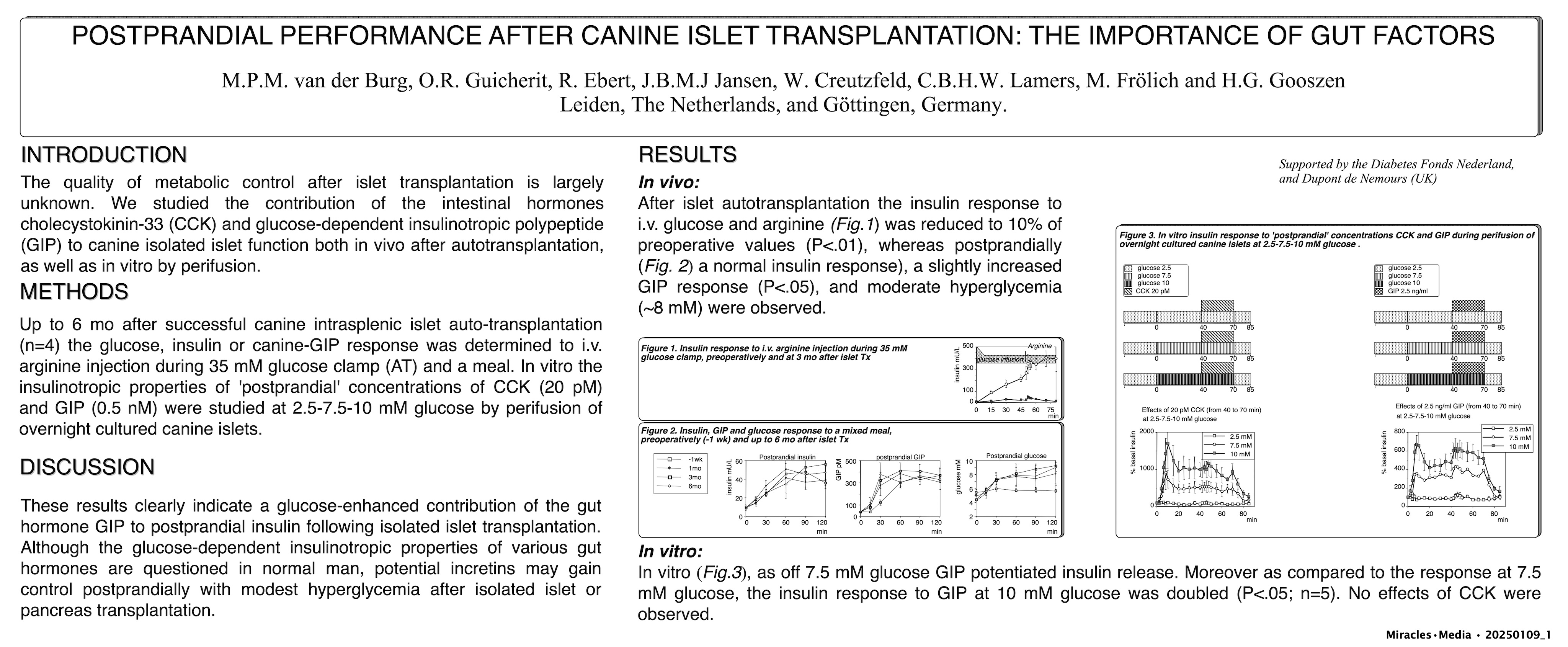 9. Van der Burg MPM, Guicherit OR, Scherft JP, Lemkes HHPJ, Frölich M, Gooszen HG. Postprandial performance after canine islet transplantation: the importance of gut factors (Abstract). Neth J Med 1992; 41: A25. PDF available below 1MEMO_20251204_3