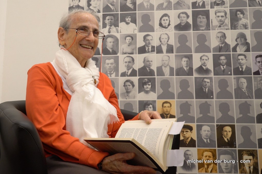 Esther Naschelski nous lit un extrait de son livre en néerlandais «Achter de Stilte» (Derrière le silence) , son poème «Le puzzle de ma vie» lors d’un événement public «Les voix dans le musée» au musée Kazerne Dossin, dimanche 3 décembre 2017, marquant le cinquième anniversaire du musée et mémorial de l’holocauste (en succédait au Musée Juif de la Déportation et de la Résistance) à Malines , en Belgique.