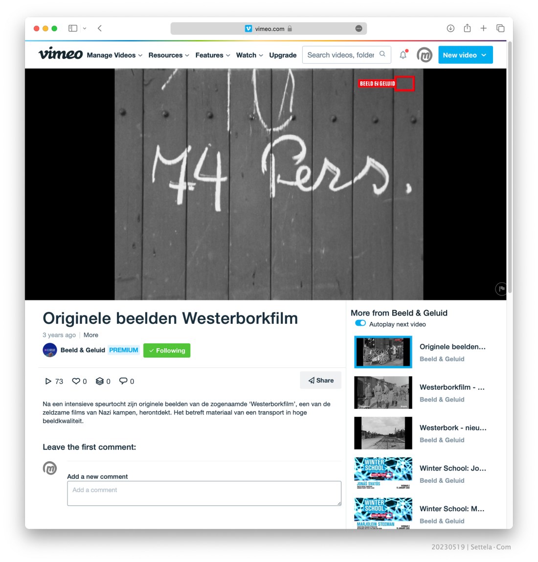 In 2021 Sound & Vision apparently started using the ‘display edition’ for publications on the new found original Westerbork deportation footage ; such as the YouTube uploads “De Westerborkfilm 📽️🎞️” (uploaded Apr 8, 2021) – https://youtu.be/8Y-A4BkWY18?t=2 , a video presented first I believe April 18, 2021 in an online Media Café event by Sound & Vision , and May 18, 2021 on the occasion of the public release of the restored film (Ref 9), in the 20 min presentation “Gerestaureerde filmbeelden Westerbork (1944)” of a compilation of selected images from the restored film – missing again the dot at 0:47 – https://youtu.be/-zCmr6PSNcI?t=47