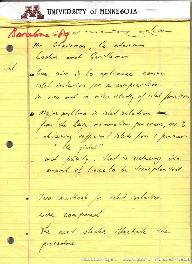 Citation info : Pancreatic Islet Isolation in UW Solution & Transplantation • ESOT 1989 Talk • Michel van der Burg • Miracles.Media • @1MEMO 20241229 • URL michelvanderburg.com/2024/12/29/