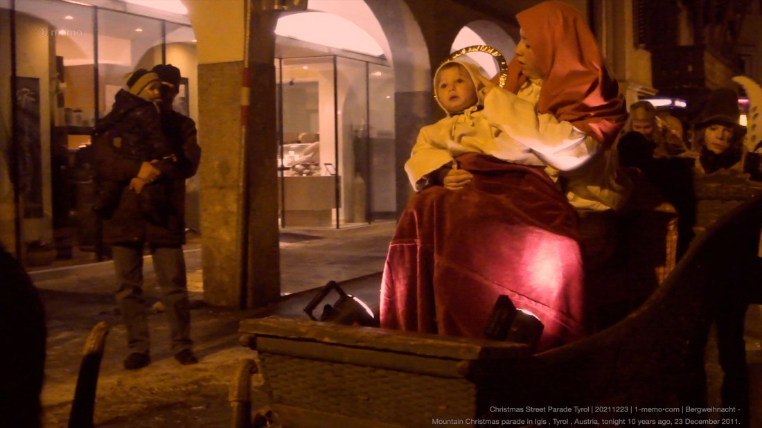 Stemmige, traditionele, kerstoptocht op 23 december 2011 in Igls (bij Innsbruck, in Tirol, Oostenrijk). Een indrukwekkend schouwspel, waarbij rond 200 inwoners prachtig verkleed als kleine en grote engelen, nachtwachters, boeren, herders en herdersjongens, alsook als Maria met het kerstkind Jezus in een traditionele slee begeleid door Jozef te voet, ‘s avonds door het dorpscentrum gaan met lantaarns en meegevoerde dieren.