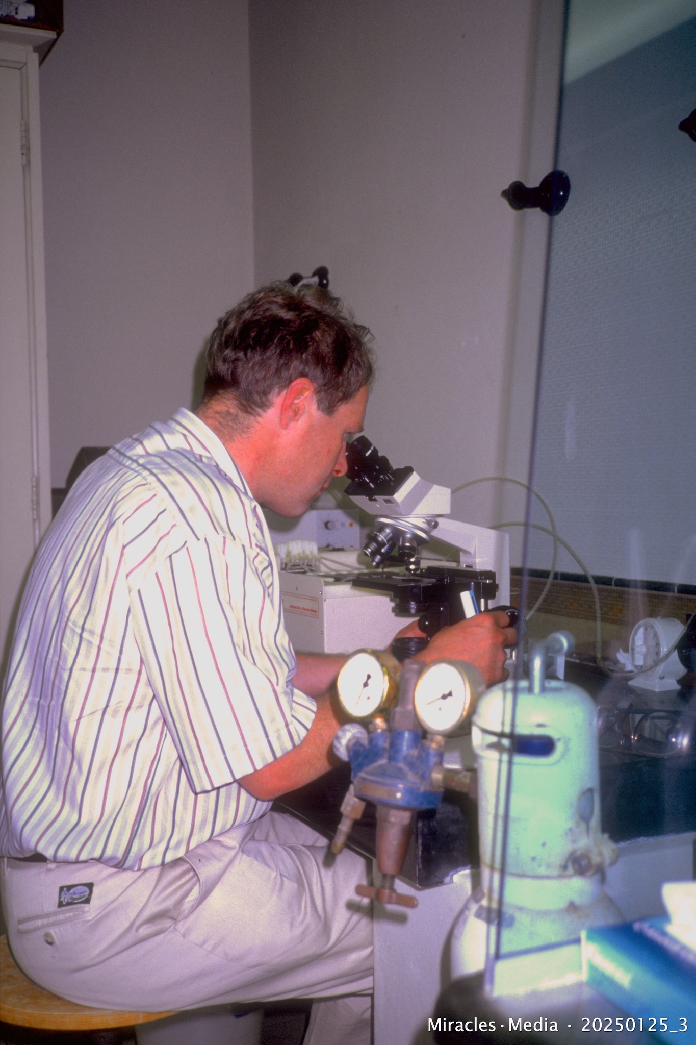Paul van Suylichem (Groningen Islet Team) in Leiden Islet Laboratory, October 8, 1990 • Photo by Michel van der Burg • Miracles.Media • @1MEMO 20250125_3 • TakeNode e8ce7630-4e75-402b-a4c2-9b007a8dd61b